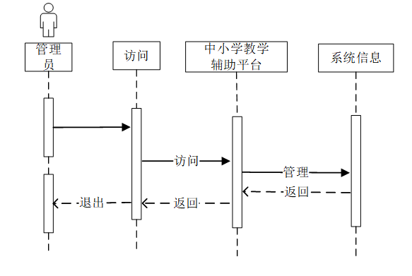 管理员通过访问系统发起请求,系统接收访问后转向系统信息模块进行管理操作。管理完成后,系统返回管理结果至系统,最终反馈给管理员,管理员可选择退出。管理员管理系统信息时序图如图4-6所示。