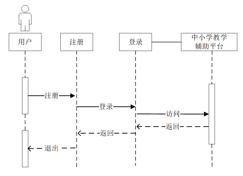 用户通过注册模块发送注册请求,系统完成注册后返回确认信息。随后,用户通过登录模块发送登录请求,系统验证用户信息后允许访问目标系统。用户完成操作后可选择退出,系统终止会话。注册时序图,如图4-3所示。