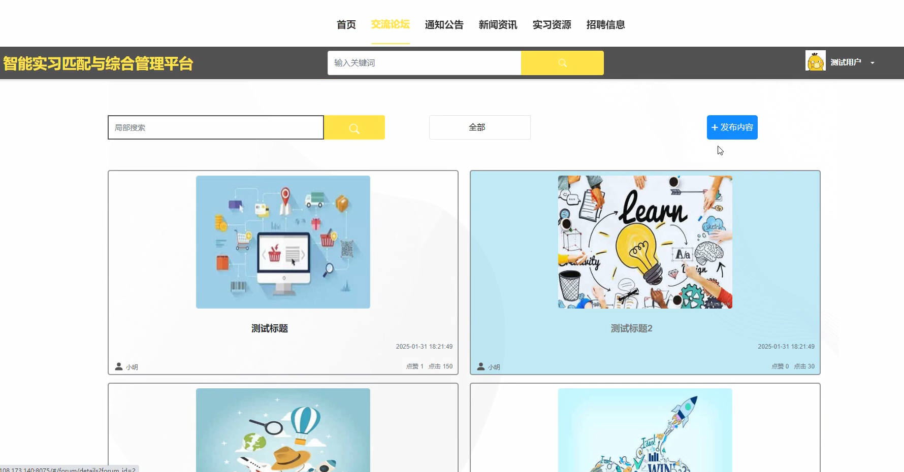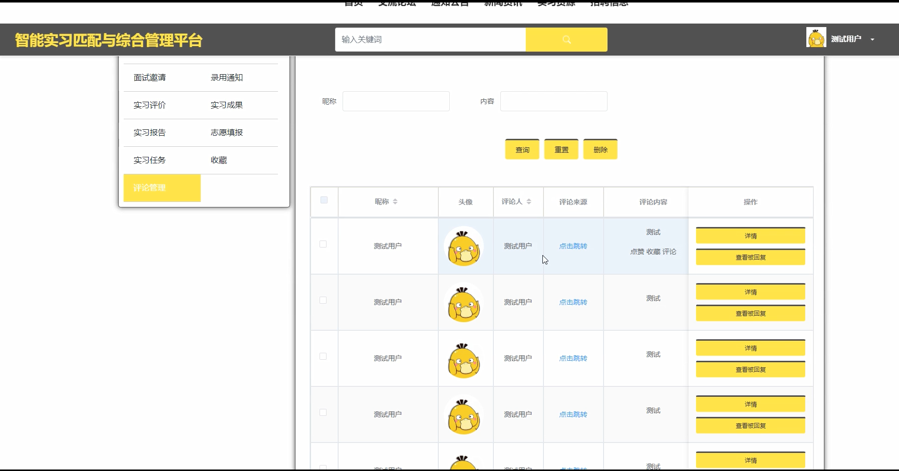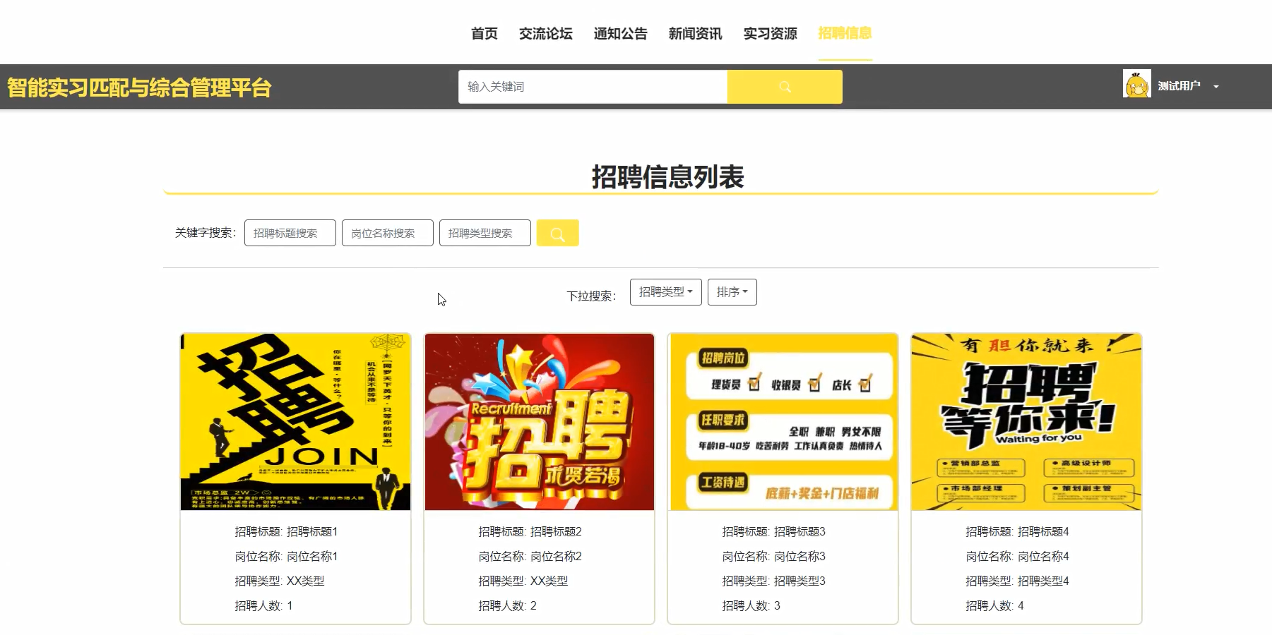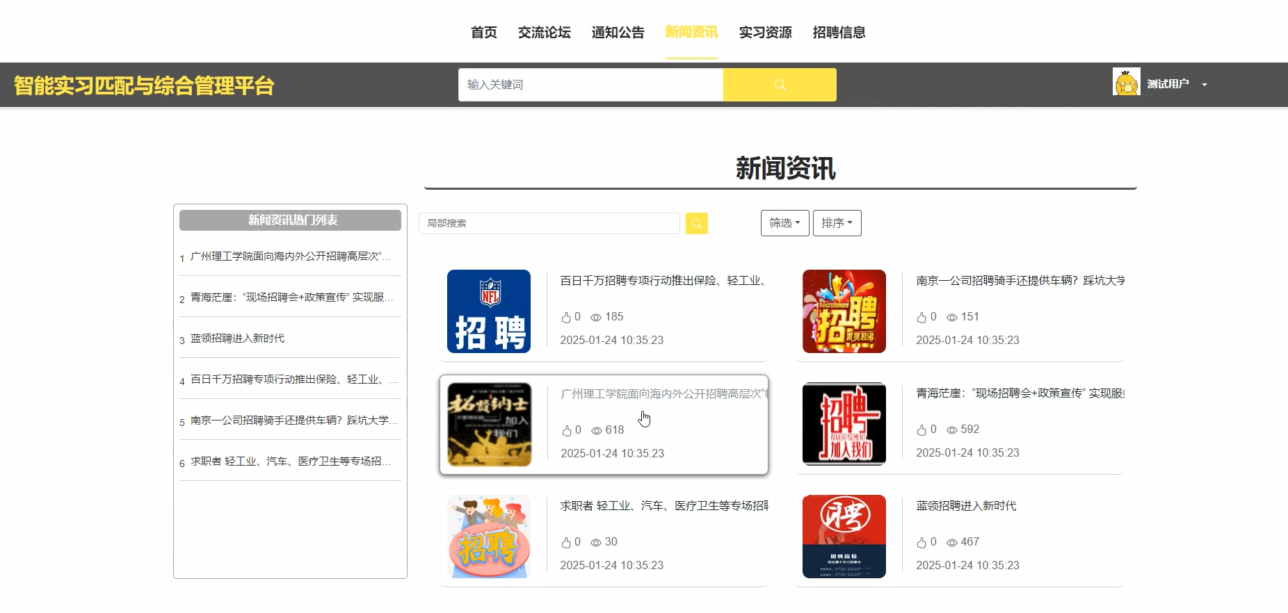 实习资源搜索功能测试: