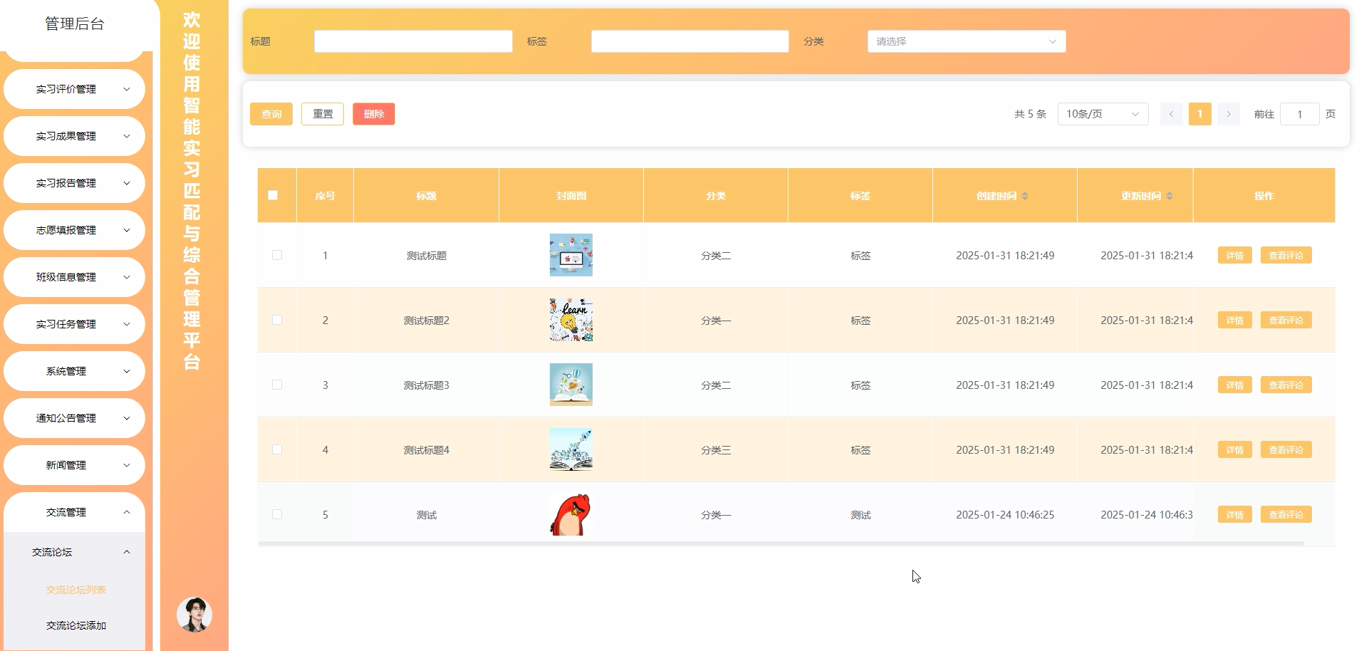 5.2.5 实习评价管理界面