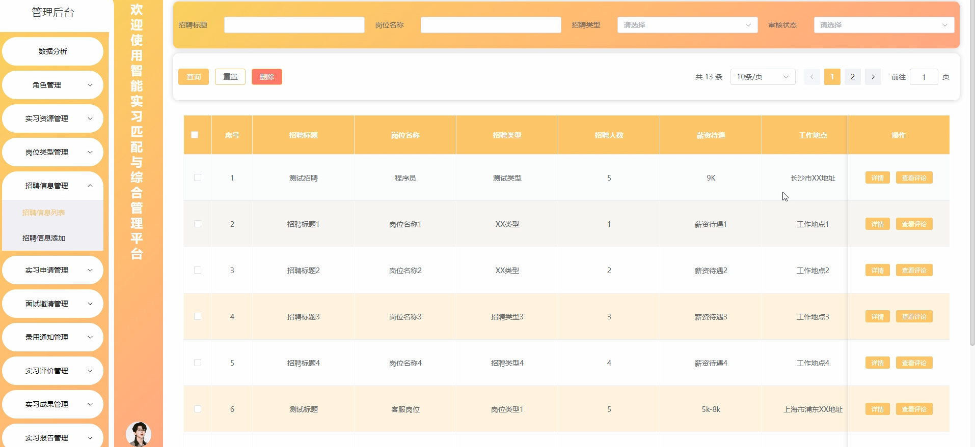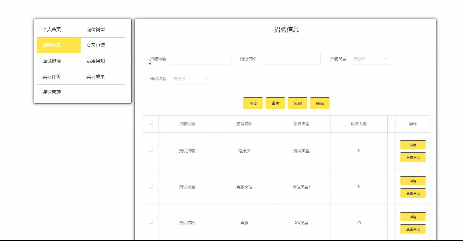 5.3.3 招聘信息管理界面