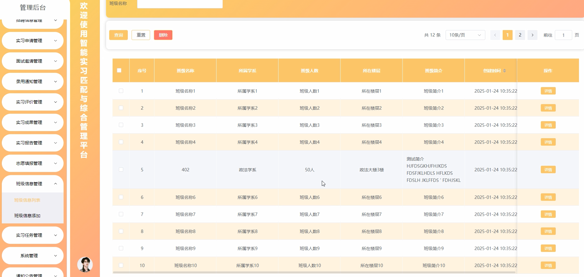 5.3.5 班级信息管理界面