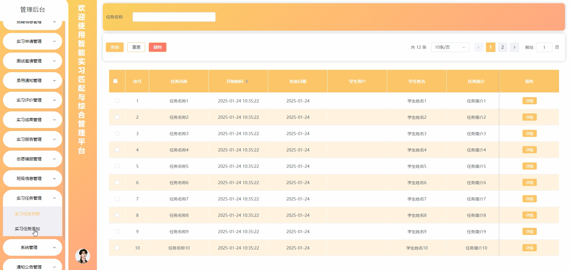 5.3.6 实习任务管理界面