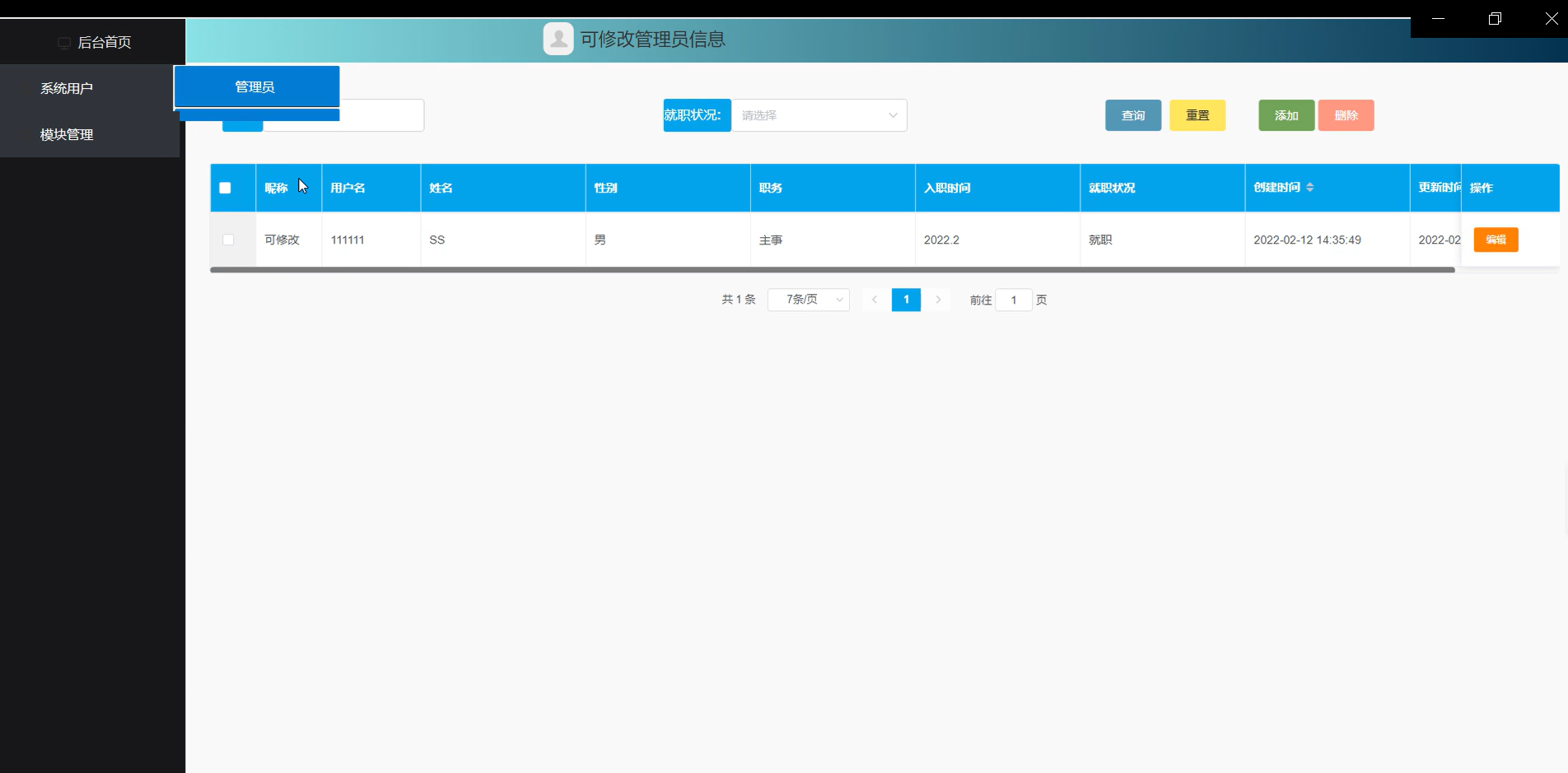 | 修改密码模块 | 原密码:admin 新密码:123 确认密码:333 | 弹出错误提示,提示确认密码不一致 | 弹出错误提示,提示确认密码不一致 | 通过 |
