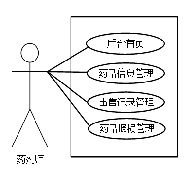 医院药品管理系统中药剂师用例图如图2.2所示: