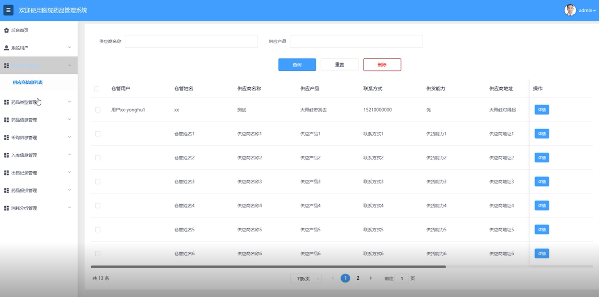 供应商信息管理:管理药品供应商的详细信息,确保采购渠道的规范和高效。界面如下图所示。