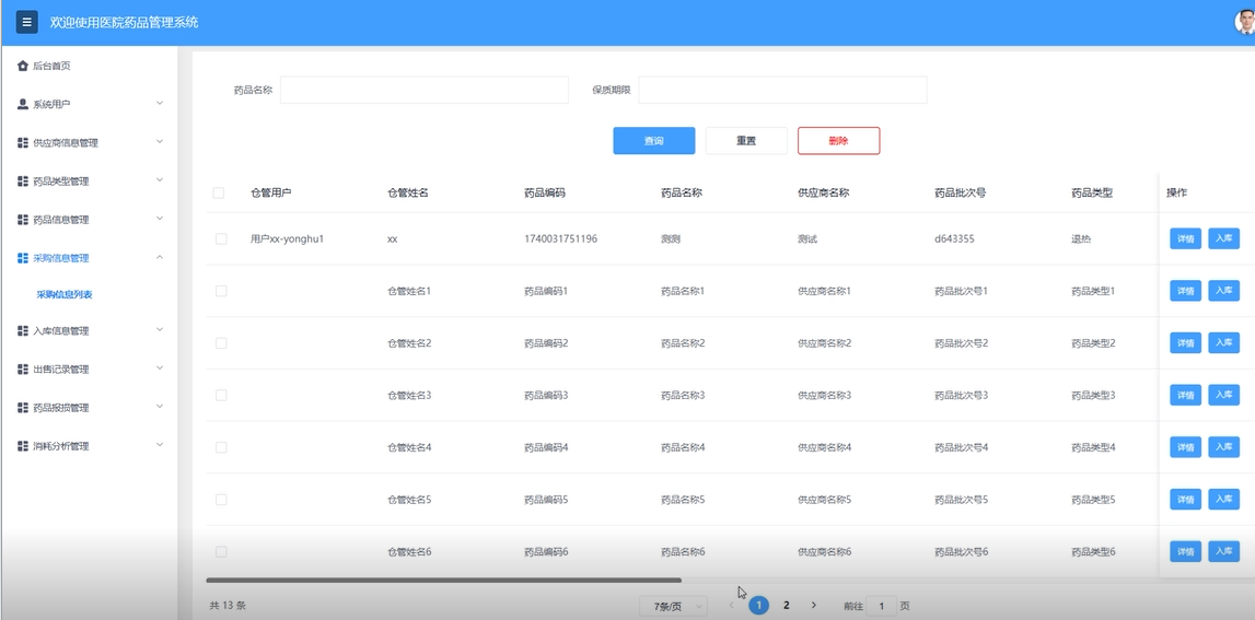 - 入库信息管理:管理药品的入库信息,并进行记录。添加入库记录,编辑和删除入库记录,查询入库记录,自动更新药品库存数量。