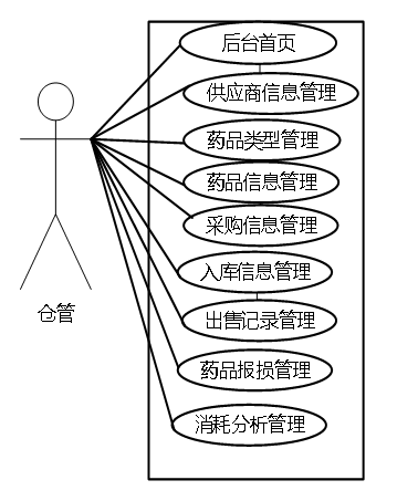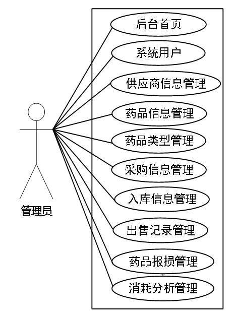 医院药品管理系统中管理员角色用例图如图2.3所示: