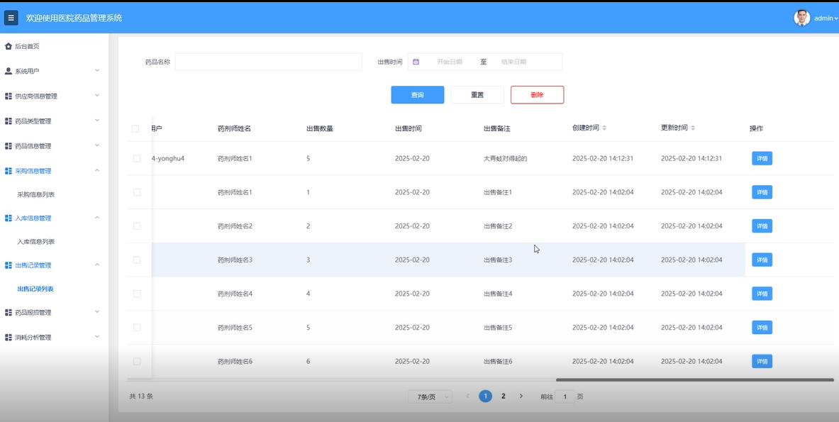- 出售记录管理:管理药品的出售记录。添加出售记录,编辑和删除出售记录,查询出售记录,统计销售总金额与数量。