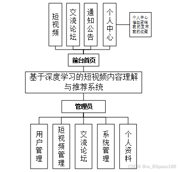 经过分析和调研,该系统的功能包括用户管理、短视频管理、交流论坛、系统管理、个人资料等系统管理功能。