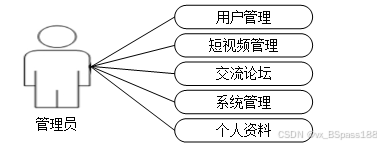 (1)管理员关键功能包含用户管理、短视频管理、交流论坛、系统管理、个人资料等进行管理。管理员用例如下: