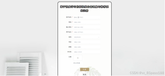 在注册流程中,用户在Vue前端填写必要信息(如用户名、密码等)并提交。前端将这些信息通过HTTP请求发送到Python后端。后端处理这些信息,检查用户名是否唯一,并将新用户数据存入MySQL数据库。完成后,后端向前端发送注册成功的确认,前端随后通知用户完成注册。这个过程实现了新用户的数据收集、验证和存储。系统注册界面如图5-2所示: