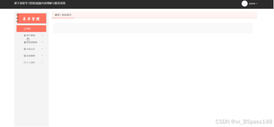 管理员进入主页面,主要功能包括对用户管理、短视频管理、交流论坛、系统管理、个人资料等进行操作。管理员主页面如图5-7所示: