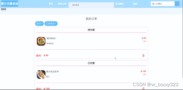 (6)我的订单:用户在提交订单后,可以对提交的订单进行管理。