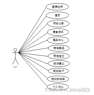 通过2.3功能的分析,得出了本餐厅点餐系统的用例图: