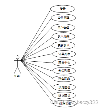 web后台管理上的管理员是维护整个餐厅点餐系统中所有数据信息的。管理员角色用例如图2-4所示。