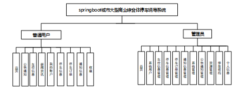 按照城市大型商业综合体停车诱导系统的角色,划分为了用户模块和管理员模块这两个大部分。