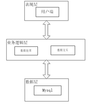 数据层(DL):由于本系统的数据是放在服务端的mysql数据库中,因此本属于服务层的部分可以直接整合在业务逻辑层中,所以数据层中只有数据库,其主要完成本系统的数据存储和管理功能。