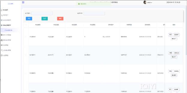 (4)停车信息管理:进入后台首页工具栏点击“停车信息管理”这个按钮可以查看所有停车信息,可以进行详情查看、删除、重置等操作。