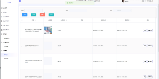 (6)资源管理:进入后台首页工具栏点击“资源管理”这个按钮可以查看所有新闻资讯、资讯分类等信息,可以进行详情查看、删除、查看评论等操作。