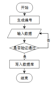 用户成功登入系统后就能够实现增加数据的操作,增加数据的编号由系统生成,用户不能随意填写,除了编号以外,其他增加信息用户自己填写,填写后的信息经过系统验证,验证通过后即可完成数据新增,数据新增的流程图如下图2-1所示。