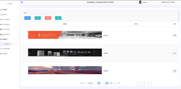 (5)系统管理:进入后台首页工具栏点击“系统管理”这个按钮可以查看所有轮播图管理信息,可以进行详情查看、删除、查看评论等操作。