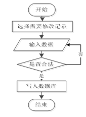 管理员可以对用户信息进行的修改,用户可以对自己权限内的信息进行修改,首先进入修改信息界面,输入修改信息数据,系统进行数据的判断验证,修改信息合法则修改成功,信息更新至数据库,信息不合法则修改失败,重新输入。修改信息流程图如图2-2所示。