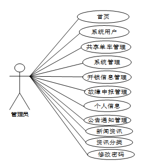 管理员是维护整个共享单车维护系统中所有数据信息的。管理员角色用例如图2-6所示。
