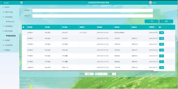 随着共享经济的迅速发展,共享单车作为一种绿色、便捷的出行方式,已经深入人们的日常生活。然而,共享单车的普及也带来了一系列维护与管理问题,如车辆损坏、乱停乱放、维修不及时等。这些问题不仅影响了用户体验,也制约了共享单车的可持续发展。因此,构建一个高效、智能的共享单车维护系统显得尤为重要。该系统能够实现对共享单车信息的实时采集、监控与管理,提升维修效率,优化用户体验,为共享单车的健康、有序发展提供有力保障。基于Spring Boot框架开发共享单车维护系统,正是基于这一背景而提出的选题。