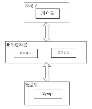 数据层(DL):由于本系统的数据是放在服务端的mysql数据库中,因此本属于服务层的部分可以直接整合在业务逻辑层中,所以数据层中只有数据库,其主要完成本系统的数据存储和管理功能。