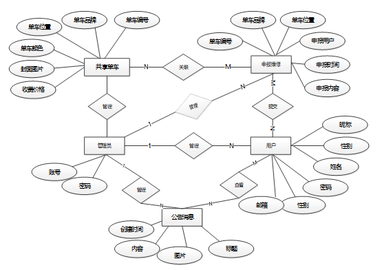 下面是整个共享单车维护系统中主要的数据库表总E-R实体关系图。