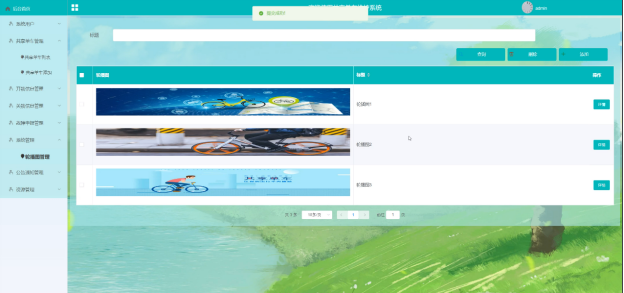(2)系统管理:进入后台首页工具栏点击“系统管理”这个按钮可以查看所有轮播图信息,可以进行详情查看、删除、查看评论等操作。