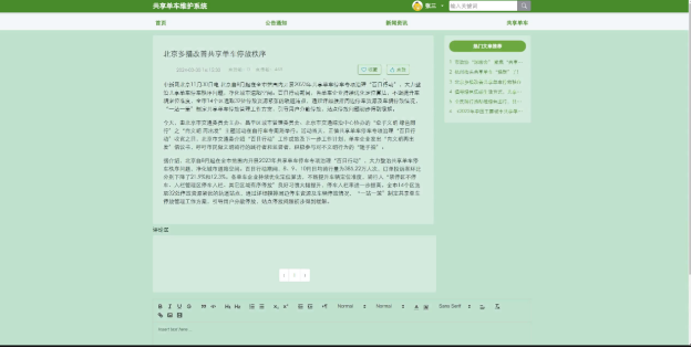 当用户点击“新闻资讯”后,可以查看新闻资讯详情,并可进行点赞、收藏、评论等操作。界面如下图4-4所示。