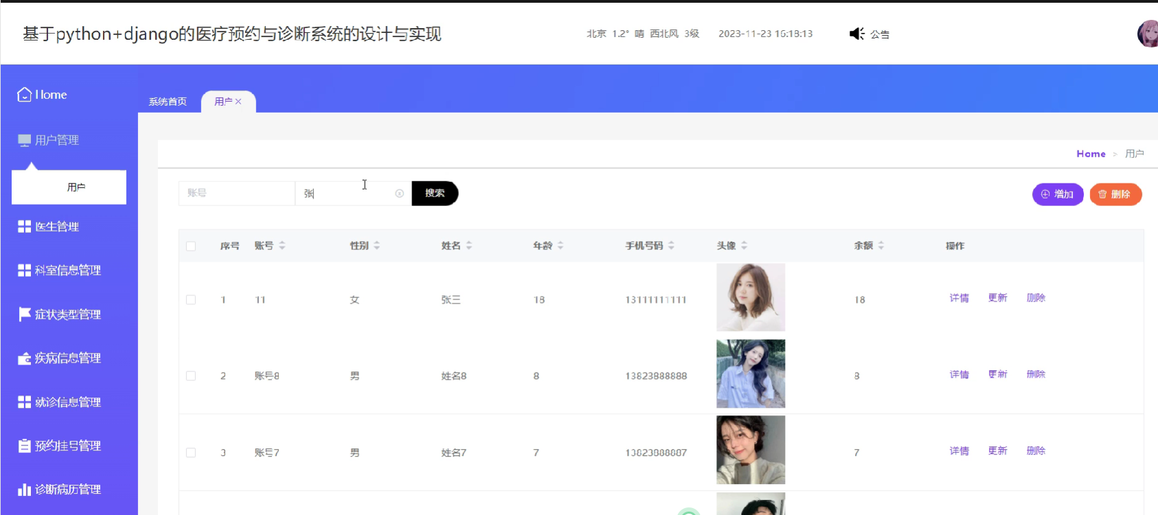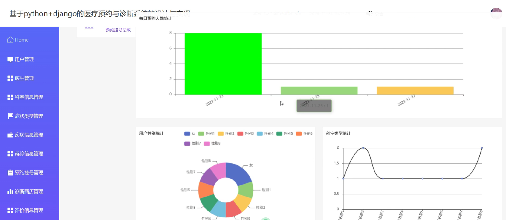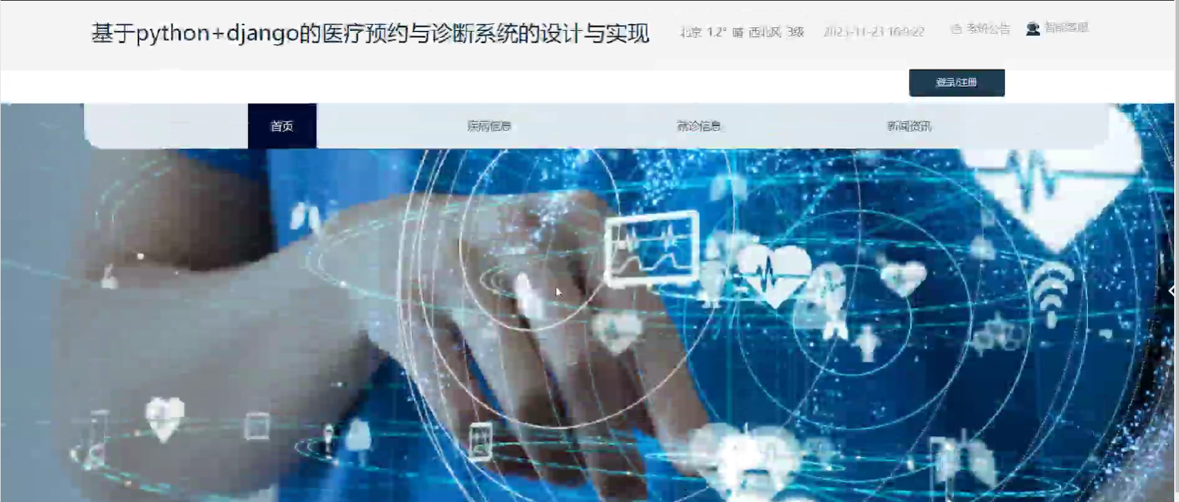 决定本次课题的原因是,纵观大三的实训和大四大半年的实习经历,接触到的项目总的来说仍然不算多,基于python医疗预约与诊断系统相较于其他项目算是我比较熟悉的一类项目,开始上手时感觉十分困难,对我来说,这样一个综合性已经比较高的动态Web项目,其中涉及的技术也非常多;python,MySQL等等,独立地完成这一个项目考验的综合水平对我来说是一个不小的挑战。本次基于python医疗预约与诊断系统的设计与开发,以python作为开发基础,采用MySQL数据库,意在探索开发医疗预约与诊断系统的道路上贡献一份小小的力量。