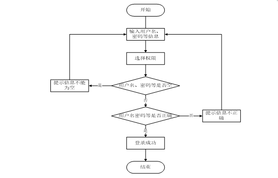 登录流程实现了管理员和其他用户的登录,在登录页面需要用户填写自己的信息,前端页面会将信息传递给后端接口,然后查询数据库确定该身份有效后登录成功,否则此用户登录失败,需要重新填写信息,进行再次验证,如图3-4所示。