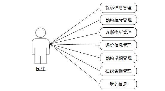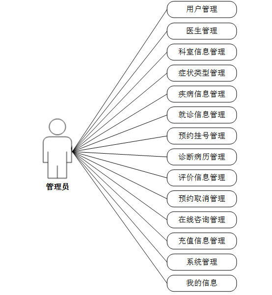 管理员负责对整个系统进行管理和监控,而其他用户则负责执行具体的管理工作。管理员、医生和用户用例分别如下: