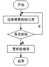 用户选择需要删除的记录后,系统判断是否确认删除。若未确认,返回选择环节;若确认删除,则更新数据库,删除对应记录,完成操作后流程结束。删除信息流程图如图4-4所示。