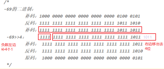 69 >> 4 --> -69/2的4次 = -69/16 = -5