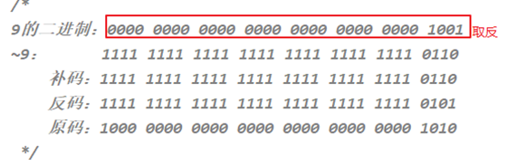| ~ | 取反运算 | 正数取反,各二进制码按补码各位取反 负数取反,各二进制码按补码各位取反 | ~6 = -7 |