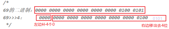 运算规则:往右移动后,左边空出来的位直接补0。(正数、负数都适用)