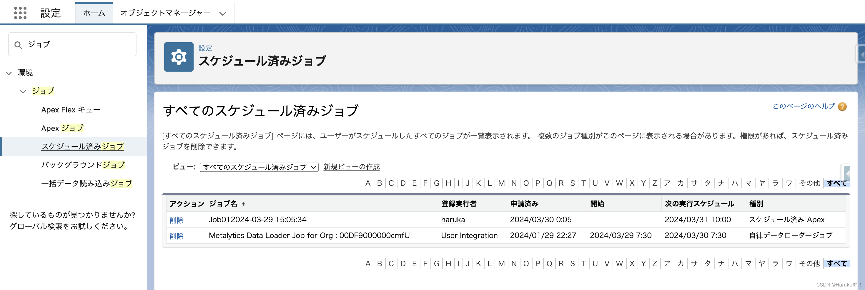 在开发者console中执行上面的代码就可以实现每月最后一天上午10点插入一条Account。执行后,job会出现在环境中。