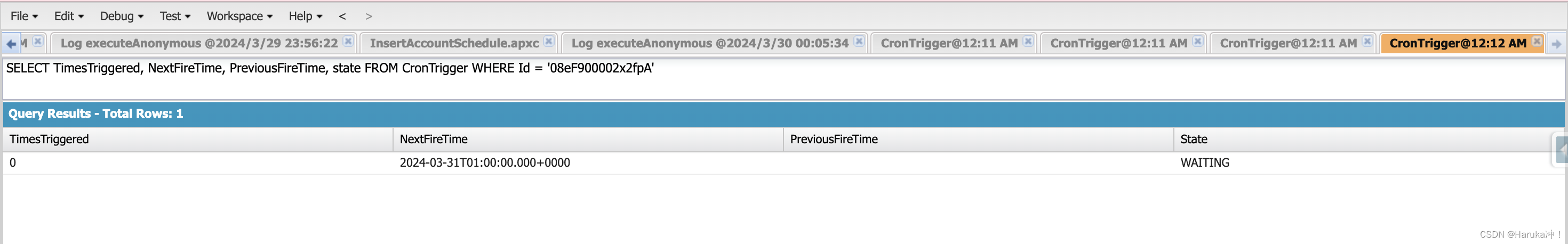 Schedulable被执行后返回值时CronTrigger表的Id,通过Id可以查到需要的信息。