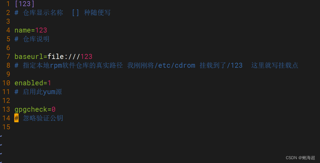 然后我们创建一个文件 名字随便起但是一定是.repo结尾的文件