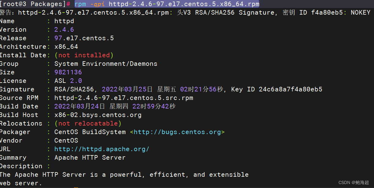 # 查看 httpd-2.4.6-97.el7.centos.5.x86_64.rpm 软件包信息