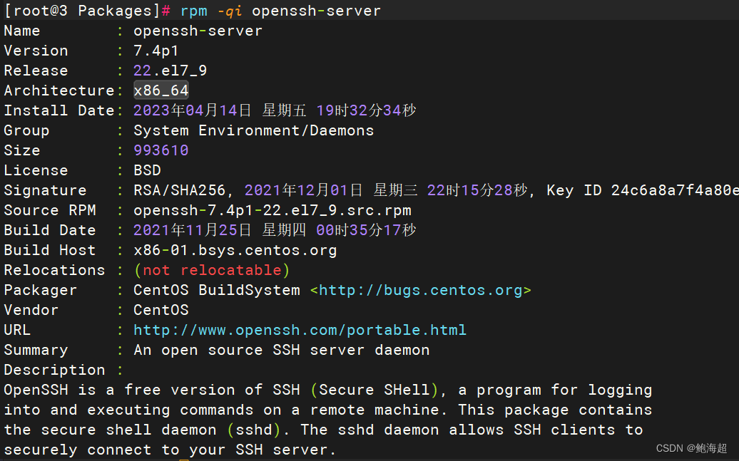 rpm -ql openssh-server # 查看openssh-server的配置文件