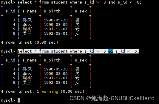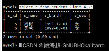 select * from student limit 2,2;第三章就是4.2