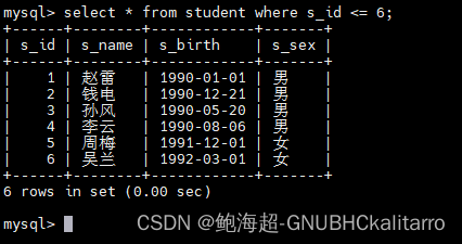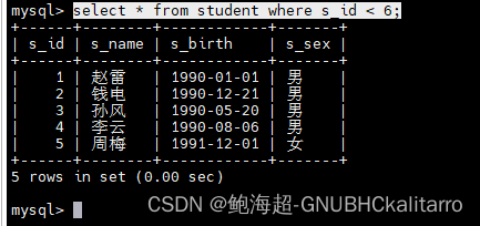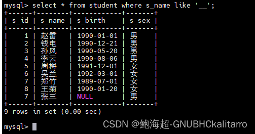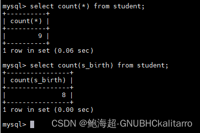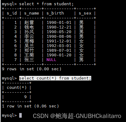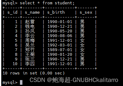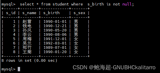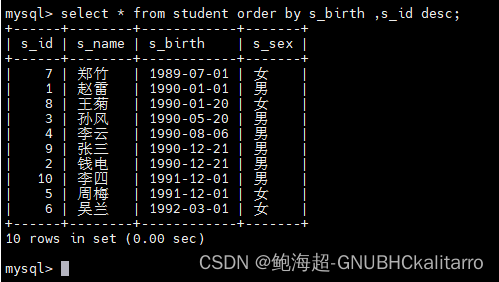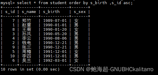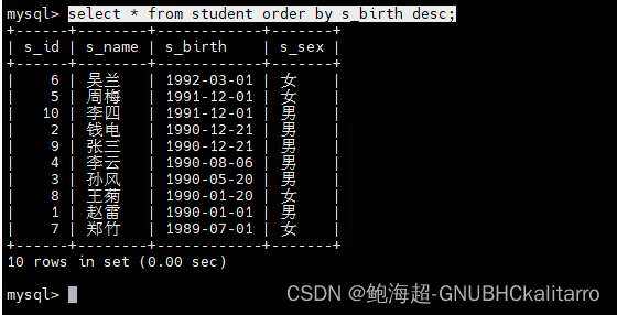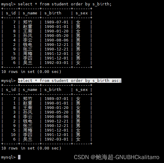 select * from student order by s_birth asc;都是一样的