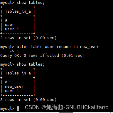 alter table user rename to new_user;