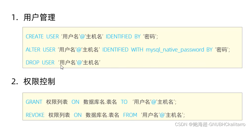 DCL:数据控制语言,用来创建数据库用户,控制数据库的访问权限