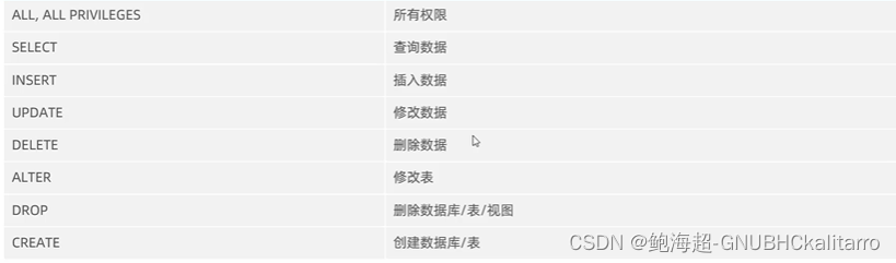 mysql主要分为这几类权限